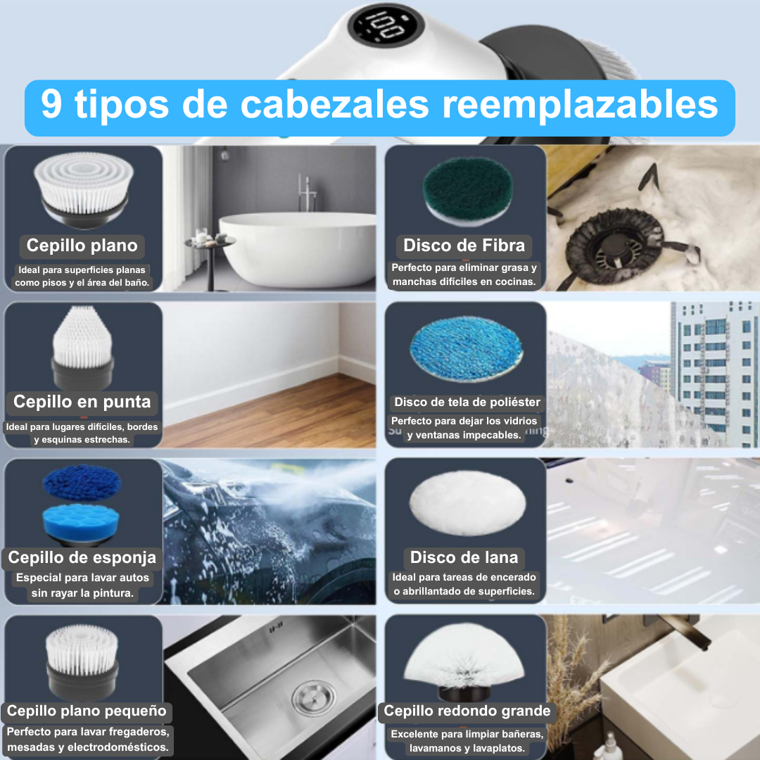 Su motor eléctrico hace el trabajo pesado por vos, ideal para personas con poca fuerza, adultos mayores o quienes sufren dolores musculares. Simplemente cambiás el cabezal según la superficie, presionás un botón… ¡y listo! Sin esfuerzo, sin dolor, sin complicaciones.