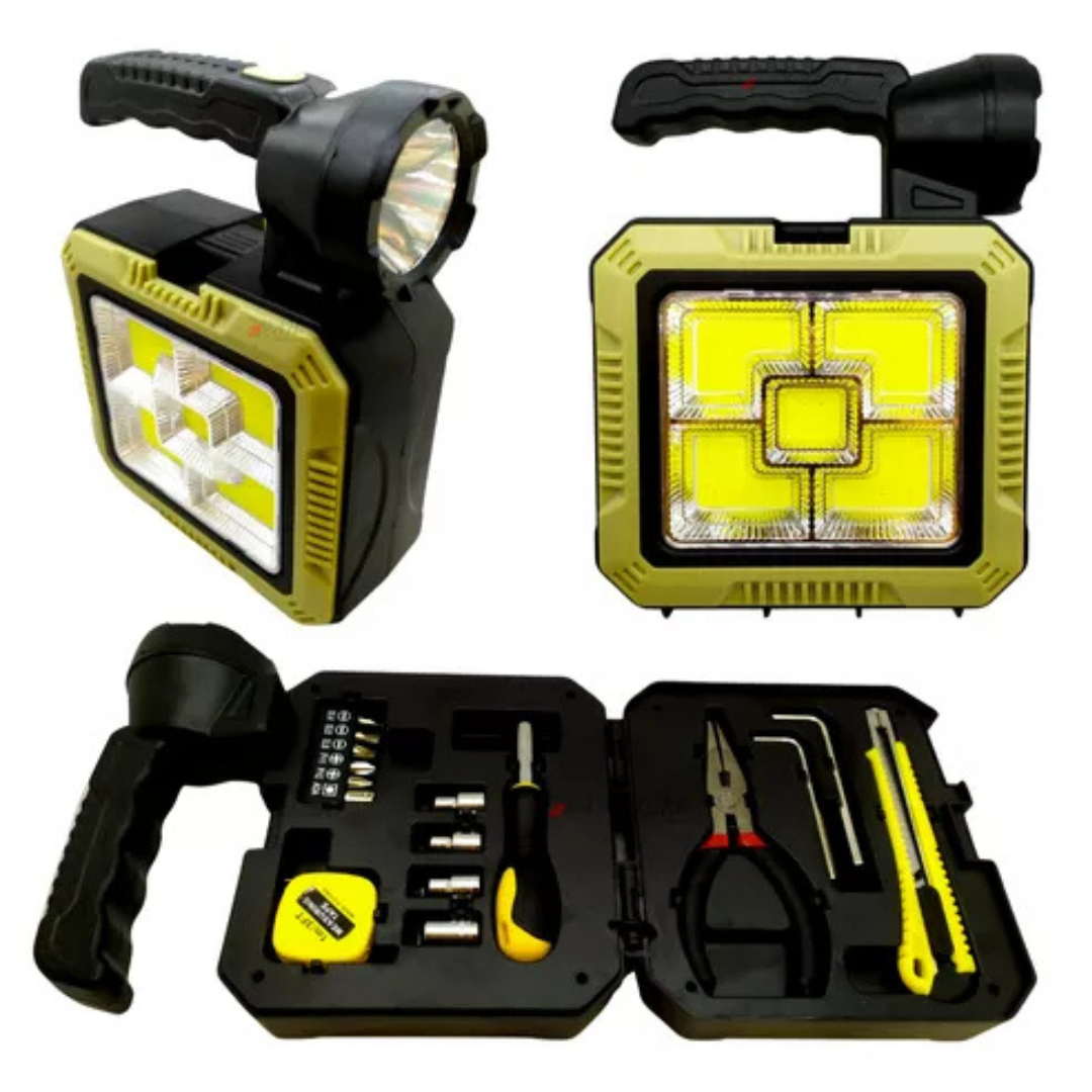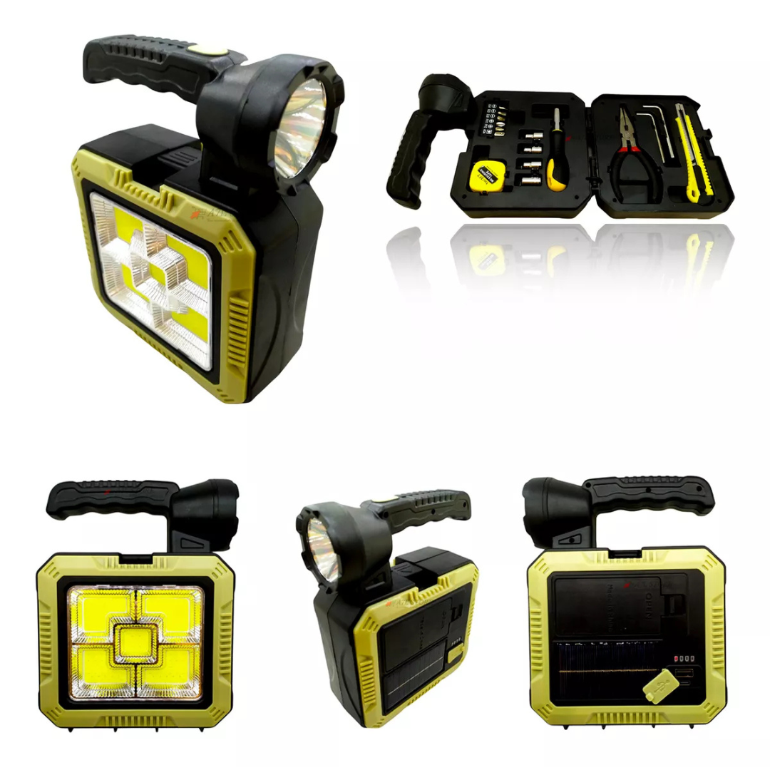 Con tres modos de luz (frontal, lateral y emergencia), esta linterna LED solar te acompaña en cortes de energía, campings, trabajos nocturnos o cualquier imprevisto.